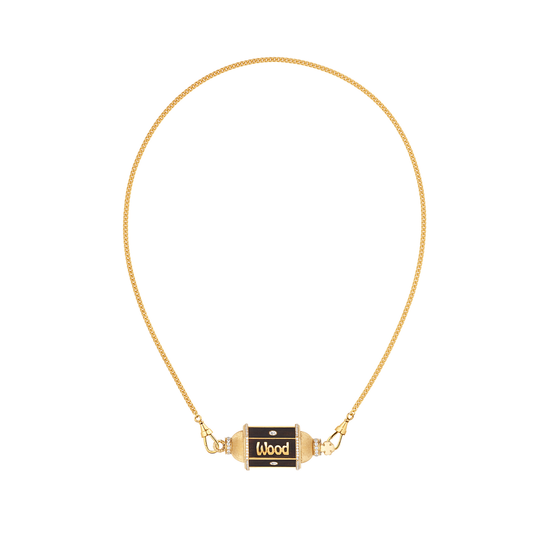 Her designs are inspired by spirituality, travel, vintage treasures, and storytelling — especially her signature lockets and talisman pieces that open to hold personal memories. Each creation blends high jewelry craftsmanship with playful enamel, meaningful symbols, and bold color combinations.